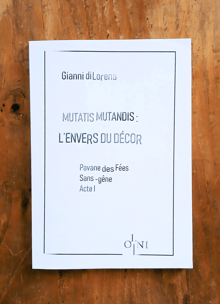 Pour le découvrir, lecteur, Gianni di Lorena t’emmène au théâtre. Plonge dans ces pages et deviens spectateur, tandis que sur la scène te sont racontés les évènements du roman : un cycle de pièces intitulée MUTATIS MUTANDIS.