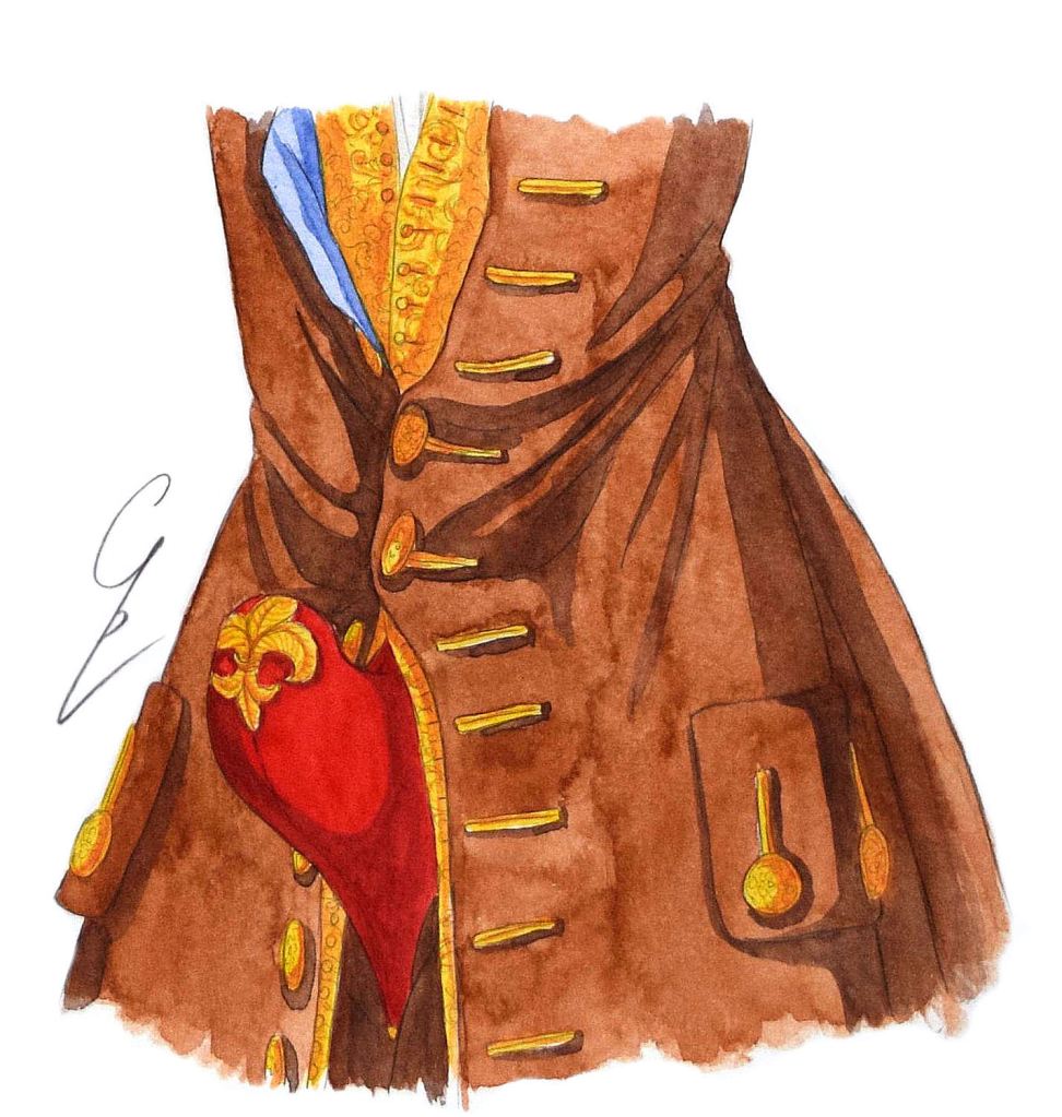 En Pays d’Oyl, on dit la braguette « en proue ». Attachée aux culottes par des boutons, elle possède une forme oblongue. De profil, son corps s’allonge presque à l’horizontale, recourbant légèrement la tête vers le haut afin de dépasser des longues basques du justaucorps, évoquant une proue de navire. Elle doit également ce nom au fait que sa tête est généralement frappée d’un emblème : par exemple, les braguettes des rois d’Oyl sont souvent ornées du symbole de la fleur-de-lys (Fig. 8 & 9).